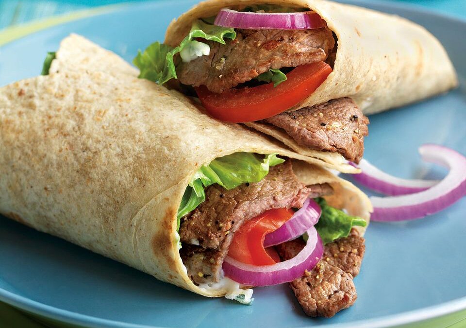 3. Spread dressing evenly on tortillas; top with lettuce leaf. Divide beef and toppings, as desired, among tortillas. Roll up tightly.